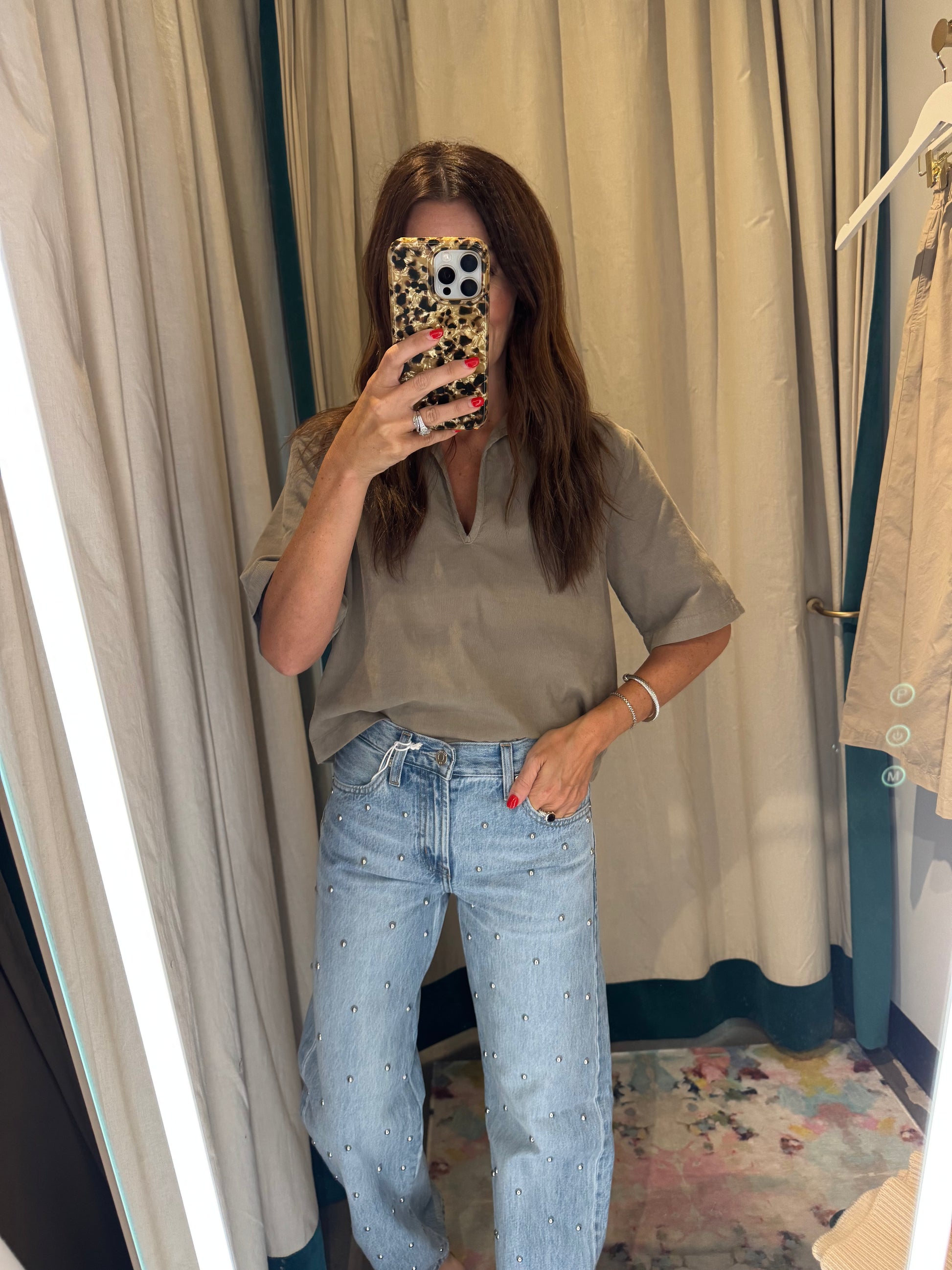 Starkx Ally short sleeve top in olive corduroy, lightweight runs true to size