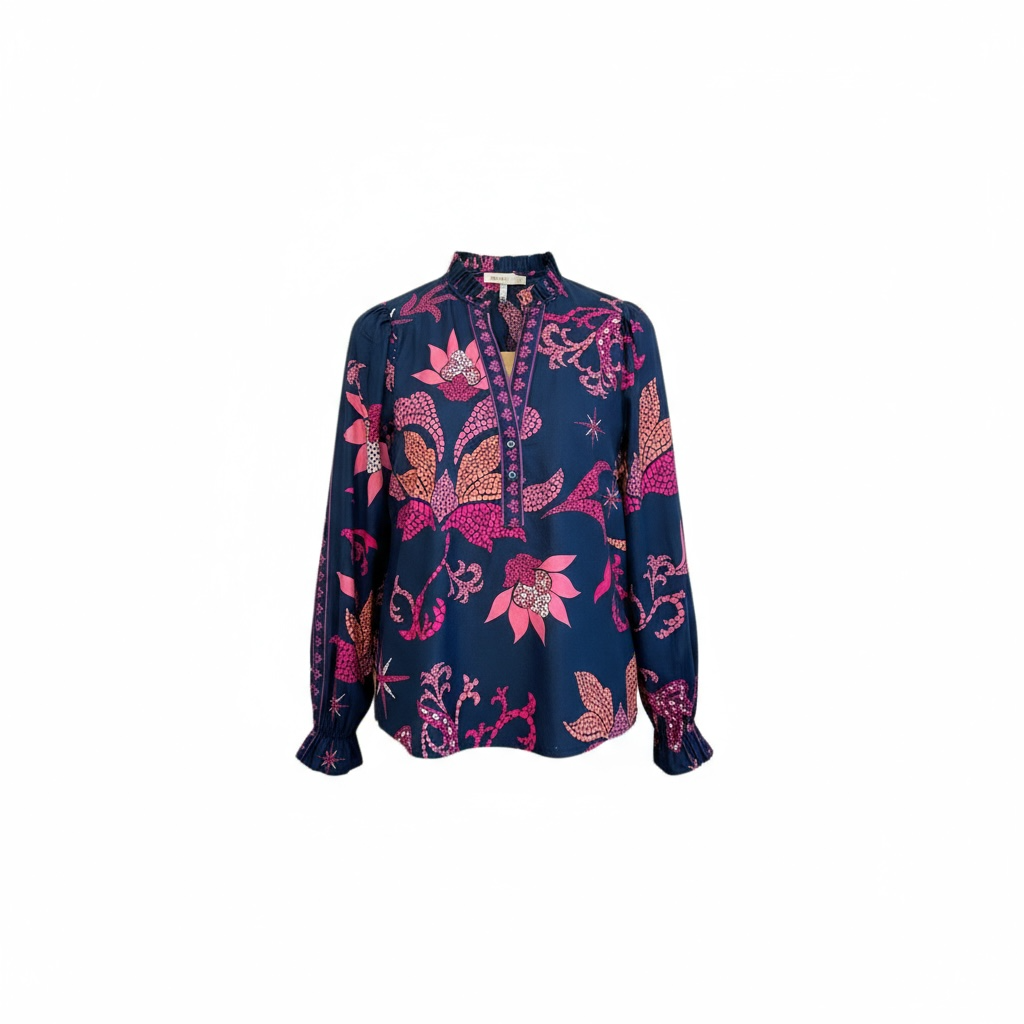 Maide Vivante Ashley top in midnight mosaic, runs a tad generous, no stretch