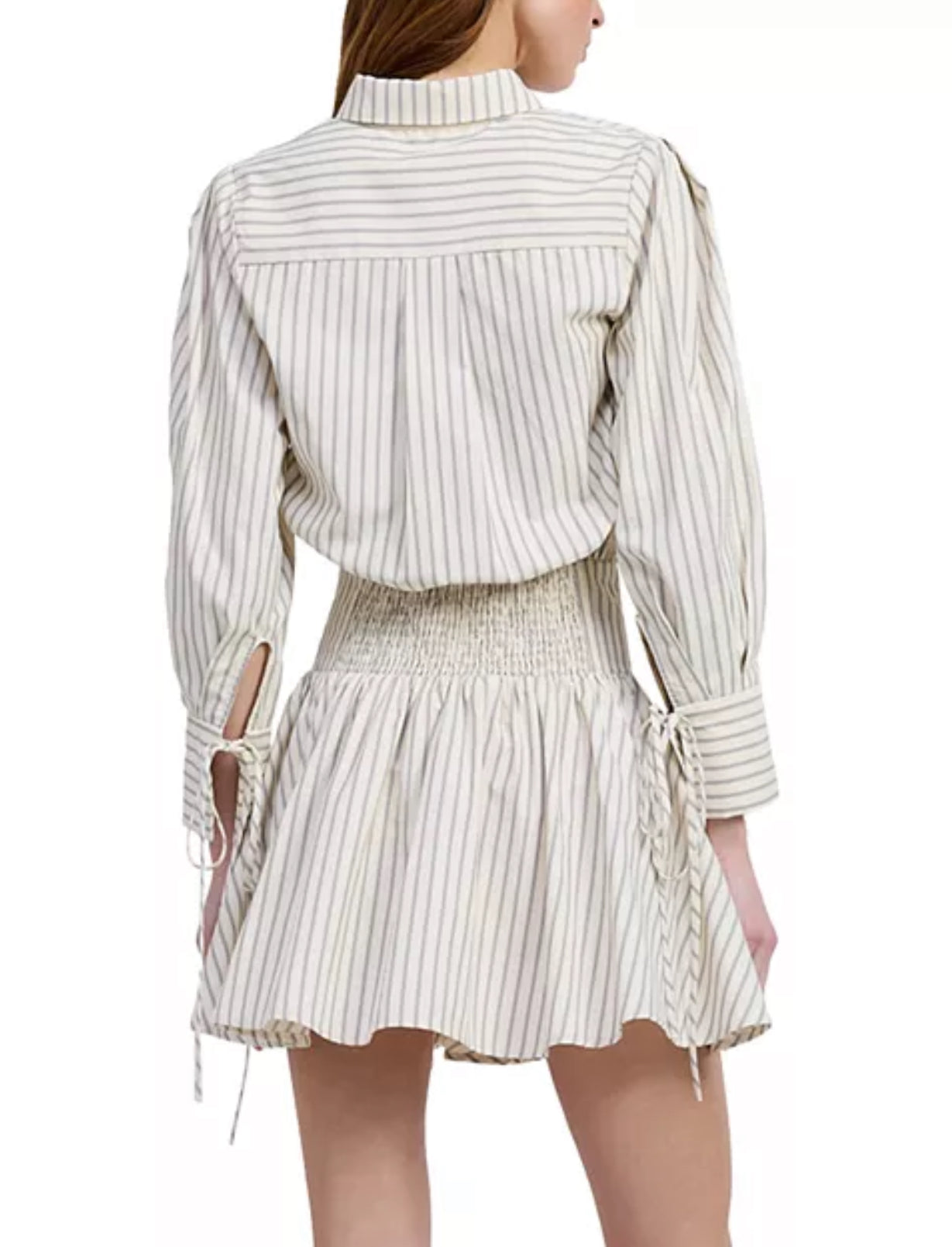 Button down mini dress with collar, fitted at waist, A-line skirt