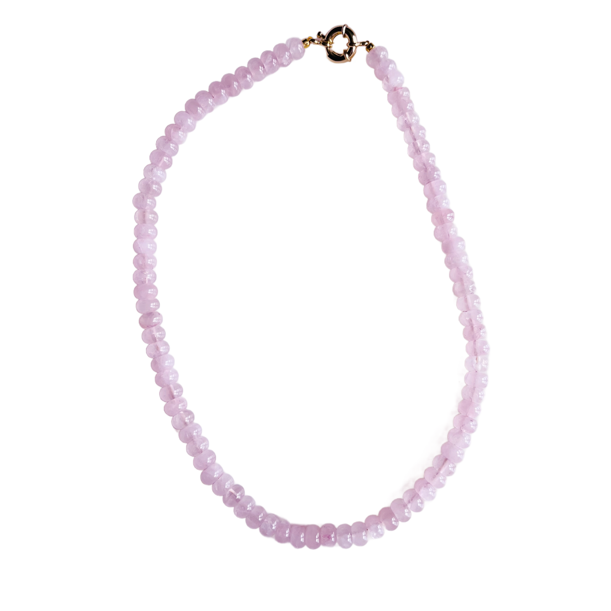 Each necklace is handmade in Charleston, South Carolina using gemstone beads and 18kt gold plated clasps. These are perfect to pair with charms either on the clasp and wear with the clasp in the front, or add a pendant or charm to the front of the beaded necklace. 17 inches long.