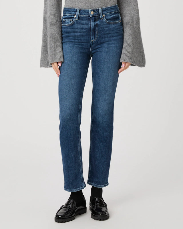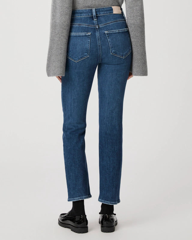 This high-rise, straight jean is lean through the leg and finishes at the ankle. Cut from our TRANSCEND VINTAGE denim in an aged dark wash with natural fading and German gold hardware, this style has the look of authentic vintage denim but is incredibly comfortable with plenty of stretch and recovery.
