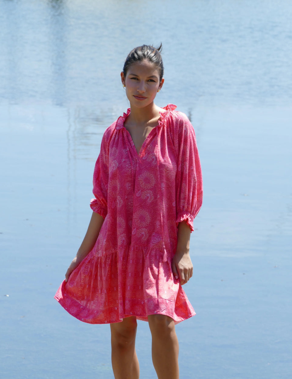This easy and breezy mid-sleeve dress is a must-have this season. Designed with an easy-fit cut to flatter any figure. A combination of pinks and corals in matching prints for a great effortlessly look. Wear it as a dress or as a cover for those endless summer days.