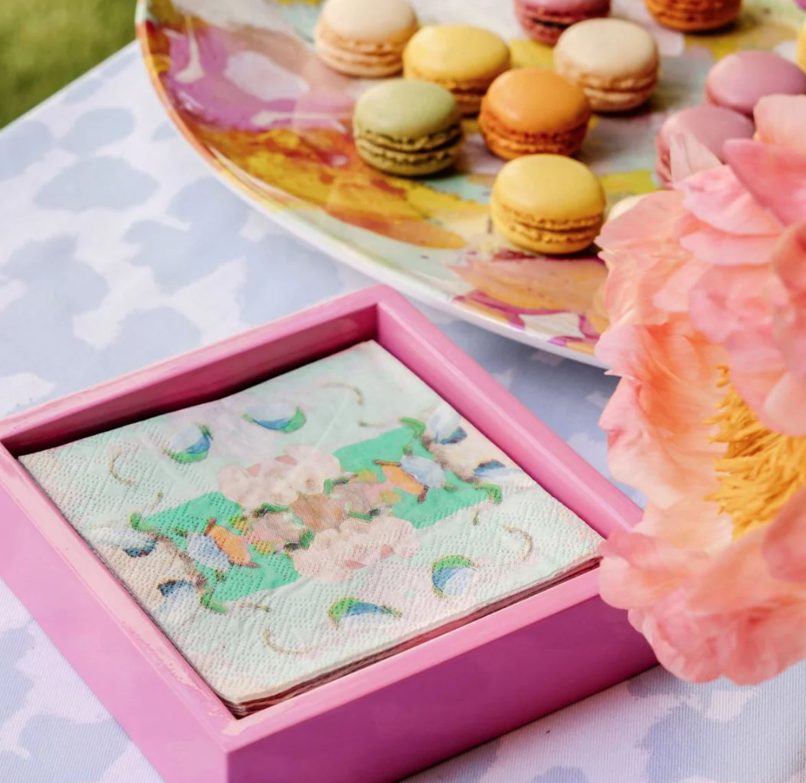 A fan favorite! A coaster for your cocktail, a place for your hors d’oeuvres, a lipstick saver or a simple table decoration. These colorful cocktail napkins take hosting to another level!