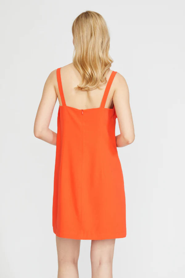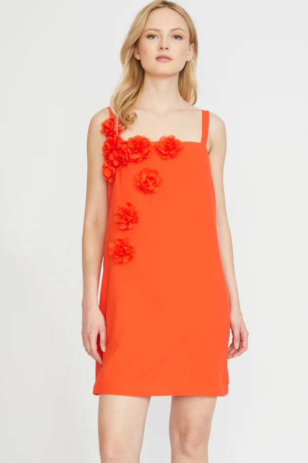 Our Strappy Dress with Flower Appliqué in Scarlet is a bold, eye-catching piece. The vibrant scarlet hue is complemented by delicate flower appliqués, adding a touch of elegance and whimsy. Perfect for special occasions, this dress combines striking color with charming details.