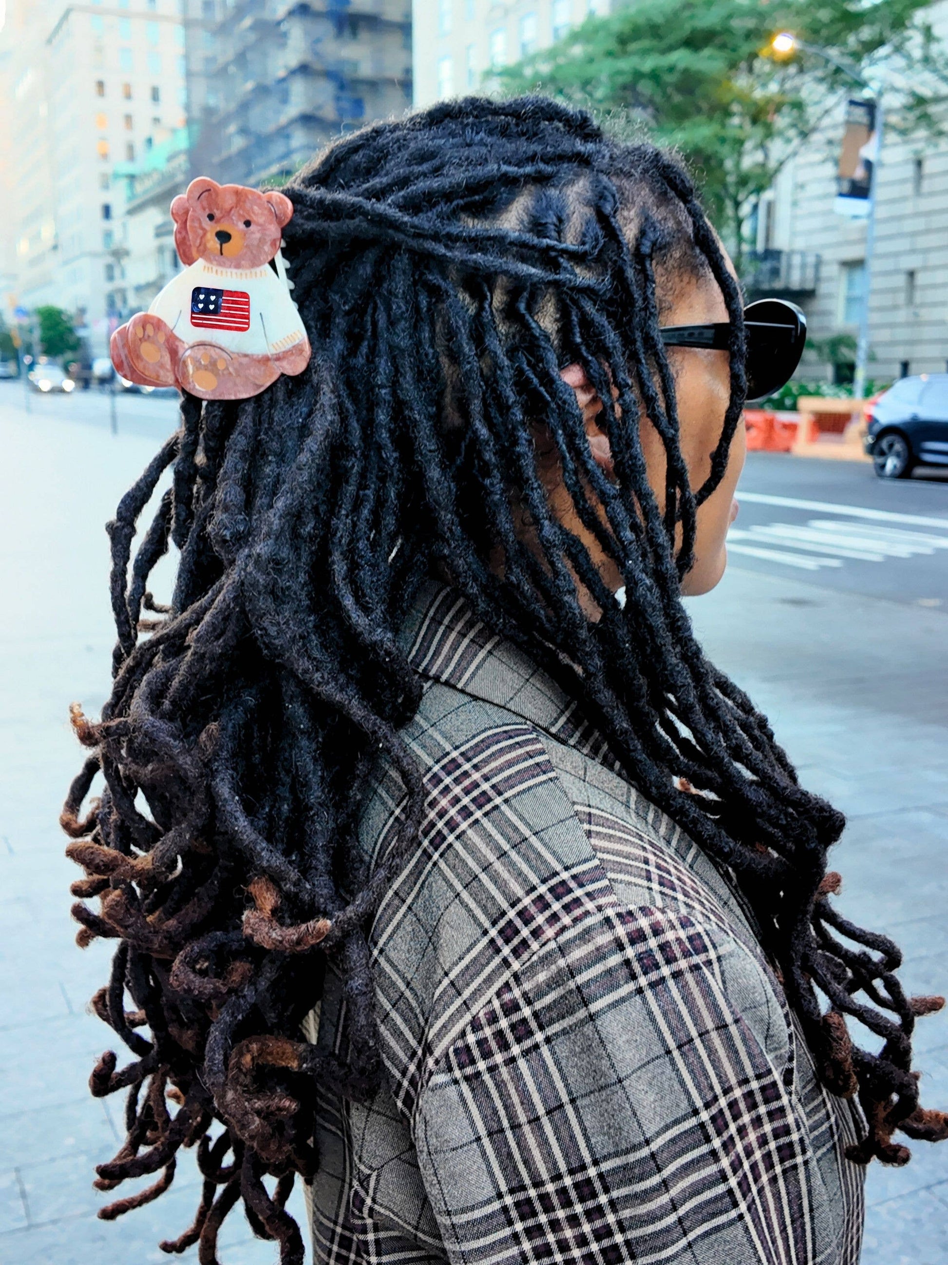 Hand-painted Americana Teddy Bear Claw Hair Clip