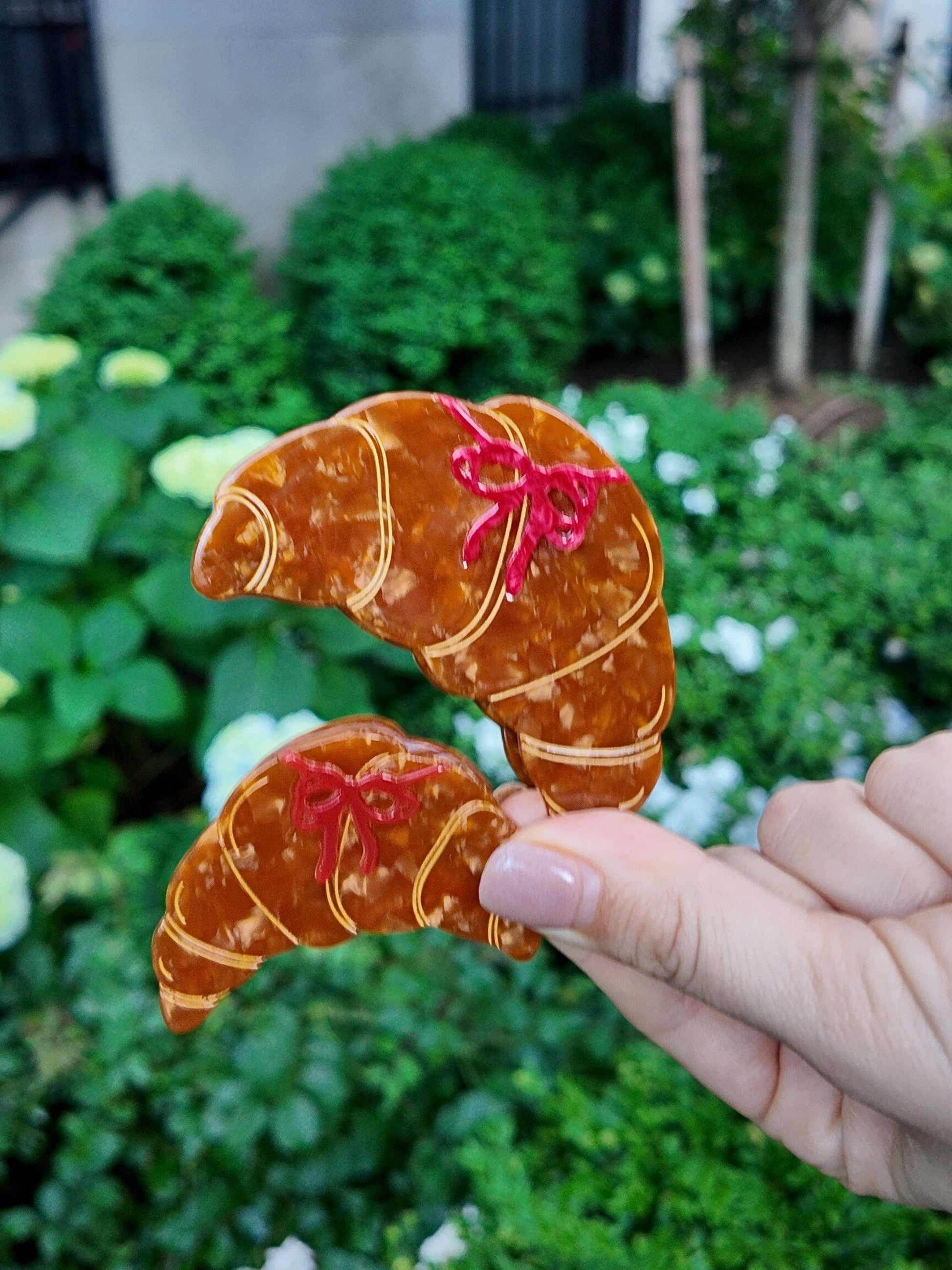 Hand-Painted Mini Bow Croissant Claw Hair Clip | Eco-Friendly
