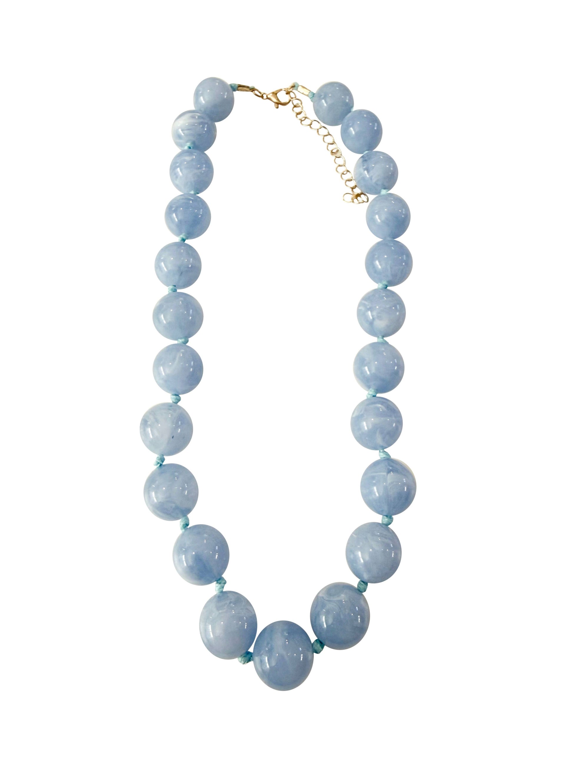 Elevate your look with this bold and timeless Mabry Beaded Light Blue Statement Necklace. Featuring large, glossy marbled maroon beads with natural variations and swirls, this piece brings a striking yet sophisticated edge to any outfit. The adjustable gold-tone clasp allows for the perfect fit, whether you’re styling it with a chic evening dress or a casual daytime look.