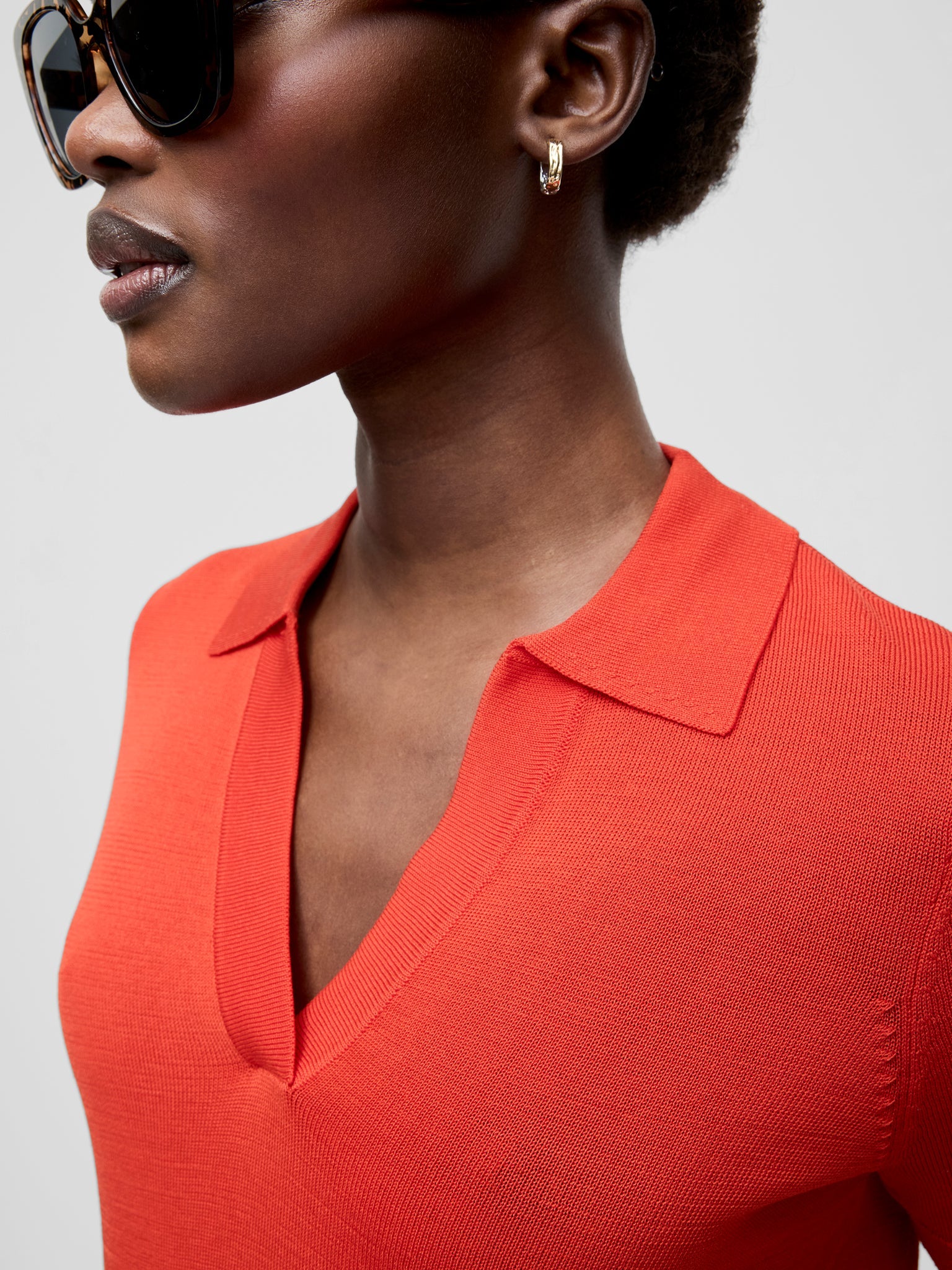 Polished, but not too buttoned up. The Sergio Viscose Short Sleeve Polo is crafted from a slinky, semi-sheer viscose knit that drapes just right. Featuring a Johnny collar and short sleeves, it’s the perfect blend of effortless and refined.
